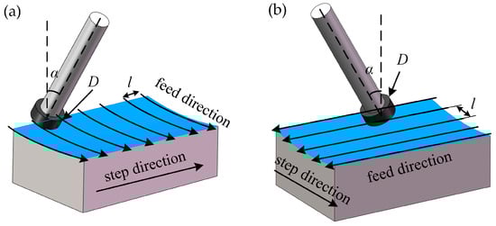 The scallop height h is positively correlated with the step pitch l. The simulation calculation is shown in Figure 9. It can be seen that the larger the step pitch, the greater the scallop height. Therefore, in the grinding process, to obtain a lower scallop height, a smaller step pitch should be selected as far as possible when the processing efficiency allows.