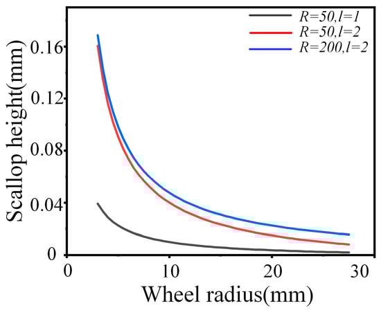 The scallop height h is negatively correlated with the radius r of the grinding wheel. Simulation calculation is shown in Figure 8. It can be seen that the larger the grinding wheel radius r, the smaller the scallop height.