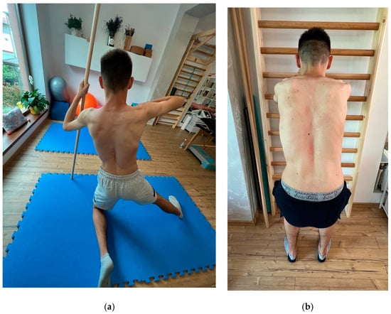 The somatoscopic examination was performed for all subjects included in the study. To eliminate postural biases, the subjects were analyzed in an upright standing position, positioned at a distance of 1–2 m from the examiner. The evaluation was conducted in both the frontal and sagittal planes. In the case of scoliotic patients, the alignment of the body is particularly significant.