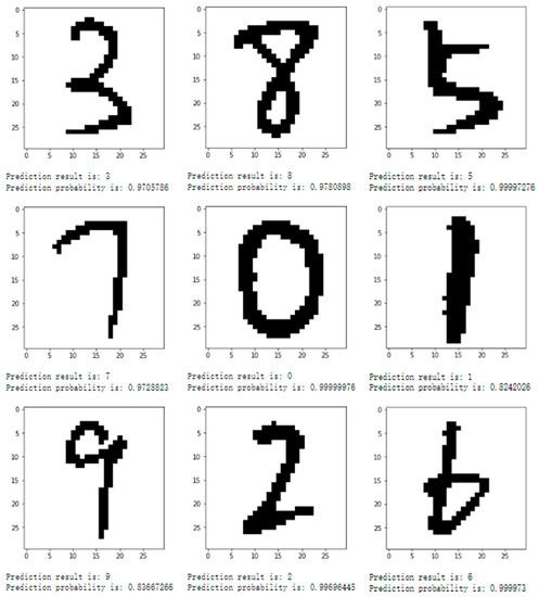 As shown in Figure 12, the final accelerator IP kernel achieves an average recognition accuracy of 95.697% on the empirical set of MNIST handwritten digits, which is consistent with the performance of this model on a computer. The following screenshots show some of the experimental results: