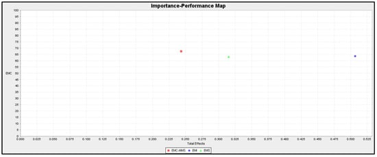 The values of load factor, path coefficient, and p-value in the structure and path models of the PLS-SEM model are shown in detail in Figure 3. The absolute values of each path are shown in Figure indicated by arrows. The indexes are very important in the structural model of the PLS-SEM model. Table 5 shows the results for each hypothesis in this research model. The formative and reflective models in PLS-SEM analyzed in Figure 3 show that all the p-values of the observed variables are less than 0.05. This proves that the values of the observed variables positively and closely affect the latent variables (EMI, EMS, and EMC-MMS) of the formative model and the latent variables (EMC) of the reflective model. In the formative model, the observed variables are generated by the same research concept, and these observed variables need to be closely related to each other. In the reflective model, the observed variables are assumed to produce the parent latent variable through linear association, and no correlation is required between them. They are not interchangeable because each observed variable represents a particular aspect of the latent parent variable. Because of this, the removal of an observed variable has a very high probability of changing the properties of the parent latent variable.