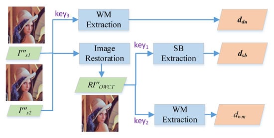 The message extraction is straightforward as we can adopt the dot vector again to obtain , as shown in Equation (4).