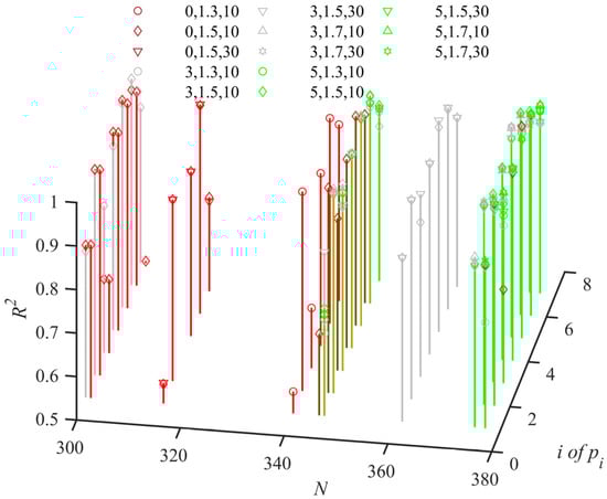 The error reduction process successfully enhanced the kriging model’s performance and reduced the necessary sample number by restricting the influence of the few poor sample points. In Equation (3), the parameter indicated the strength of the restriction, with the performance decreasing if this parameter exceeded the reasonable range . The reasonable range was determined according to distributions in sample points, guaranteeing that most of the restriction occurred on the side that did not influence the expected performance. The reconstructed restricted performance has the same monotonicity and first-order smoothness.