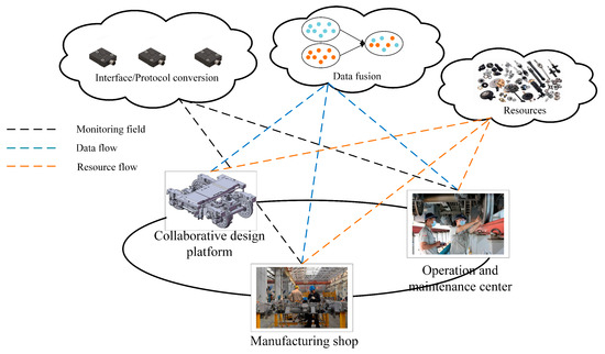The intelligent perceptive technology of the whole life cycle arranges sensors in the equipment, personnel and materials of actual production and O&M to collect real-time data. Different types and structures of sensors are used because these data have distinct transmission interfaces and protocols. Therefore, arranging a specific data access model for uniform access to data with different resources is necessary. Additionally, the data shall be extracted, cleaned, transformed and uploaded to achieve data integration due to the diversified structure. The collaboration network is established to achieve the objective at each stage of design, manufacturing and O&M. With the perception, calculation and interaction ability, the collaboration network could achieve the all-round and full-coverage data perception of a complex product, and fully obtain the product data in design, manufacturing and O&M process to construct an intact digital twin body.