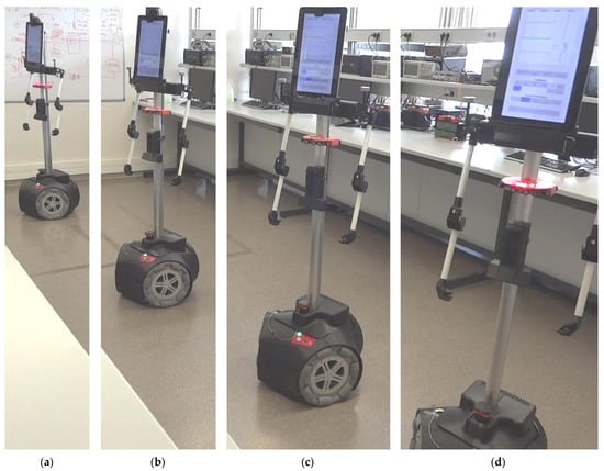 APR-02 mobile robot performing a transversal (or lateral) displacement: (a) starting point; (b,c) intermediate points; and (d) destination point.