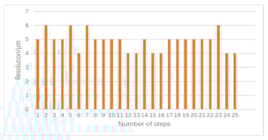 Figure 11 shows the results of the motion resolution test of the adjustment structure in the z-direction displacement, where the resolution of the adjustment mechanism in the z-direction translational motion is 5 ± 1 μm.