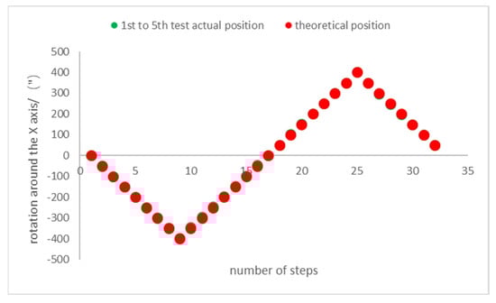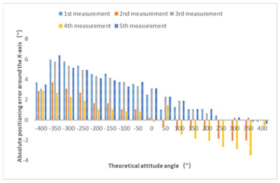 The accuracy of the deflection attitude in the x-direction is measured according to the test protocol. Figure 16 shows the obtained results.