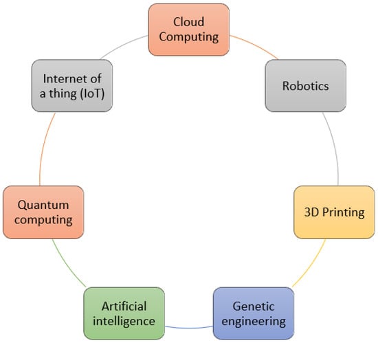 Cloud computing provides computer resources such as data storage, software, servers, and computing resources on demand and made available over the Internet [43,44]. However, quantum computing uses the principle of quantum theory to perform calculations [45]. It differs from conventional computers that use 1 s or 0 s, but quantum computing uses the object state before measurement [46]. This allows quantum computing to perform exponentially compared to conventional computing. Robotics are machines built by combining technology, mathematics, engineering, and science [47]. This machine performs tasks hitherto tricky and sometimes dangerous for humans. Robots have been deployed for several applications, including surgery and manufacturing [48,49,50,51,52,53].
