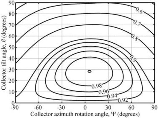 - Le Roux, W.G. Optimum tilt and azimuth angles for fixed solar collectors in South Africa using measured data. Renew. Energy 2016, 96, 603–612. [Google Scholar] [CrossRef]