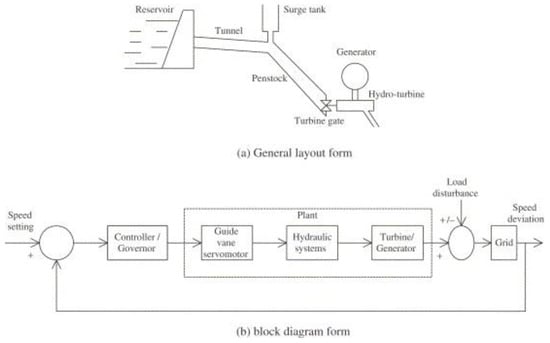 Schematic of a hydropower plant with its structures and components (a) general layout form (b) block diagram form [72], Reproduced with permission from Kishor et al., Renewable and Sustainable Energy Reviews; published by Elsevier, 2007.