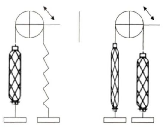 Therefore, to achieve the output of the desired angle and thus control the joint, the process of converting the linear motion of the pneumatic tendon into rotation must be completed using a pair of pulls. The following two methods are available, as shown in Figure 2.