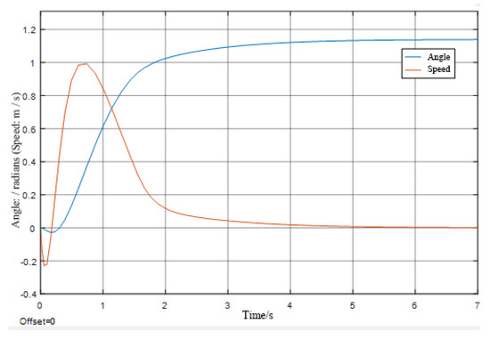 Then the transient response performance index can be derived from Figure 29: the rise time of the experimental curve is ts = 0.6 s and − 0.1 s = 0.5 s; its peak time is tp = 2 s; the experimental curve will not overshoot oscillation when the input 45° step response reaches stability, indicating that the system output is stable. Taking T(60%) = 0.4 s as the time constant of reference, then 2 T = 42.75°/45° × 100% = 95%, meaning that the system can reach 95% of the desired value of the rise in two cycles, which also further confirms that the system response speed is sufficient.