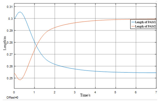 Pneumatic artificial muscle length change graph under a load of 4 kg and a pressure of 0.5 MPa.