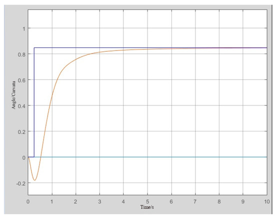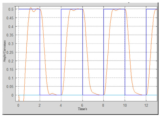 Due to the angle range limitation, the unit step input value should be 0.85, as shown in Figure 12, for the uncorrected step response. Figure 13 shows the schematic diagram of the unit step input of 28 degrees, and Figure 14 shows the square wave input of 28 degrees.