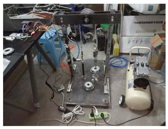 The structure of the pneumatic artificial muscle experimental stand and the names of the parts are shown in Figure 16.