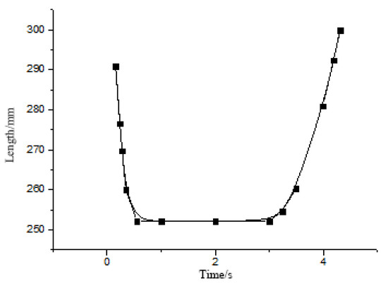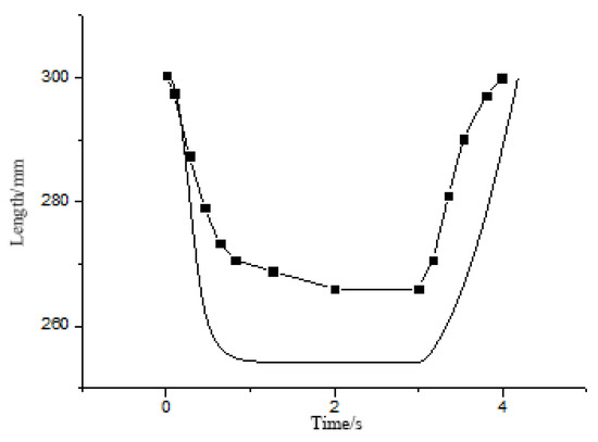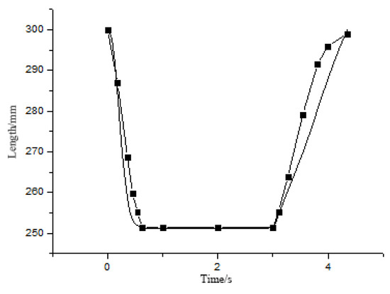 Pneumatic artificial muscle length change graph under a load of 4 kg and a pressure of 0.3 MPa.