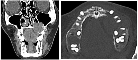 - Düsünsel, R.; Güney, E.; de Gündüz, Z.; Poyrazoglu, M.; Yigitbasi, O.; Kontas, O. Maxillary brown tumor caused by secondary hyperparathyroidism in a boy. Pediatr. Nephrol. 2000, 14, 529–530. [Google Scholar]