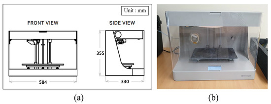 3D printing, also known as additive manufacturing, has gained increasing attention owing to its unique potential for creating geometrically complex structures, which enables mass production while having economic and environmental benefits. In this study, a chuck adapter was fabricated using a 3D printer (Mark Two, Markforged, MA, USA). Figure 2 shows the Markforged Mark Two 3D printer used in this study, and Table 1 lists the performance parameters of the printer.