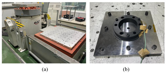 Natural frequency and durability experiments for chuck adapter testing equipment. (a) High-amplitude vibration, and (b) natural frequency experiment.