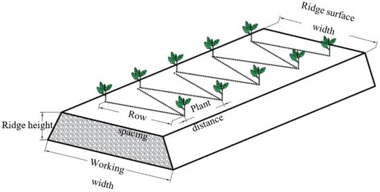 Schematic diagram of cultivation system of mulched ridge with double row.