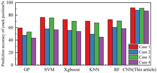 Figure 8 shows the accuracy results of the CNN and five other machine learning methods for blade crack depth prediction. Similarly, in four cases, the CNN model developed in this study outperforms the other five models in predicting blade crack depth by 95.4%, 90.7%, 94.6%, and 87.5%, respectively.