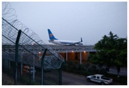 With the development of the civil aviation industry, airport throughput increases year by year, and many new aircraft types are utilized. As an important facility used to solve the conflict between aircraft ground taxiing and vehicle driving routes in the flight area, airport taxiway bridges as shown in Figure 1 is critical for the safety of the flight area and the efficient operation of aircraft. Different from the continuous tiled vehicle load of traditional bridges, the load on the bridge deck of the taxiway bridge is the moving load of the aircraft, while the vehicles pass under the bridge. This special load mode brings great difficulties in later maintenance and detection. Generally speaking, the design service life of the taxiway bridge is 20 years. In actual operation, it is often used for more than 10 years without any detection. The safe capacity under the fatigue state is unknown, and there are various security risks such as wall cracking, concrete spalling, and steel bar exposure. Because on-site inspection needs to interrupt traffic and long-term loading test conditions, and the particularity of aircraft moving load will lead to local loads more than six times higher than the vehicle loads of conventional bridges, the detection experience of traditional ports and highway bridges is not applicable. Furthermore, the particularity of the design of the taxiway bridge leads to its cross runway, and the site construction and detection will have a great impact on the operation of the whole airport. At present, there is relatively little research on this special bridge in the world. Researchers have focused on establishing and optimizing the simulation modeling of the taxiway bridge [1,2,3,4,5] and the mechanical property test [6,7,8]. In the field of traditional bridges, there are many studies on fatigue performance. Through various methods such as the simulation model [9,10,11,12,13,14,15] and experimental research [16,17,18,19,20,21], the fatigue change mechanism and mechanical deformation of traditional bridges under vehicle load has been revealed, and the fatigue damage prediction model and the life prediction model have been deduced. However, as mentioned above, due to the great differences between the taxiway bridge and the traditional bridge in the bridge structure, aspect ratio, pavement material, roughness, and texture depth, there is no evaluation standard for its safe passage.