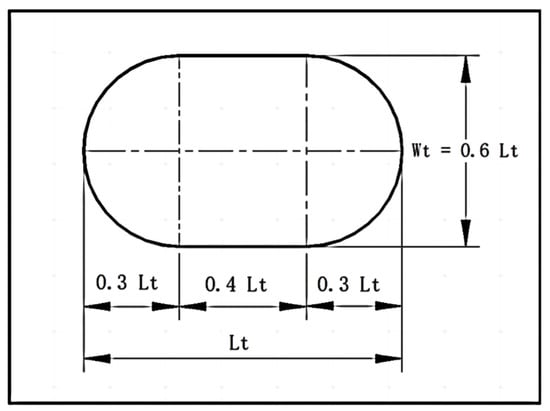 The interaction range between the aircraft and the pavement is a contact surface. Due to the small area of the contact surface relative to the pavement area, the stress distribution in the middle and the edge of the wheel tends to be uniform. At the same time, to improve the operation efficiency of the model, the moving load of the aircraft can be simplified as a loaded treatment applied according to the wheel print area. According to pavement design specification [22,23], the shape is composed of the semicircle and the rectangle, as shown in Figure 2.