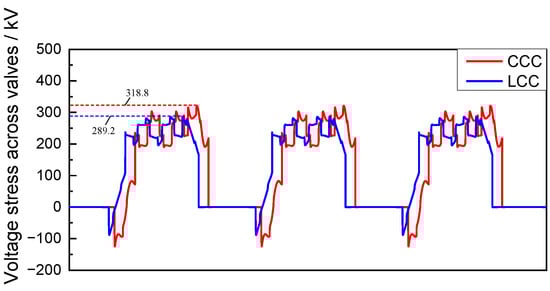 Comparison of the voltage stress across thyristor valves between the CCC and the LCC.