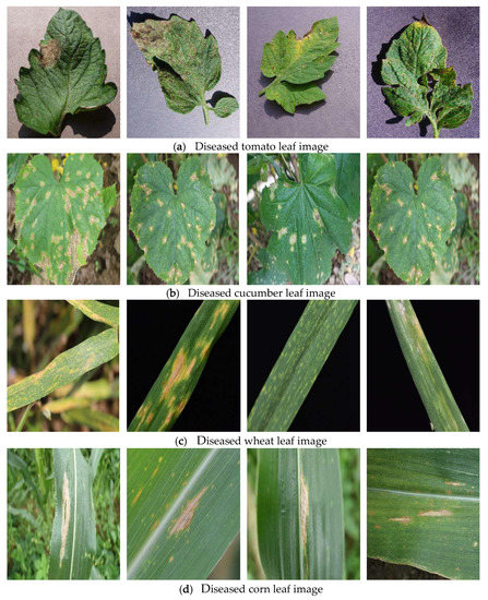 Crops are the main source of human energy and nutrition. According to the Food and Agriculture Organization of the United Nations (FAO), 650 million people in the world were undernourished in 2019 and 768 million in 2020. In addition, the global report on food crises stated that nearly 40 million more people would be affected by food crises in 2021 than in 2020. In Asia and Africa, more than 50% of the population relies on agricultural production for employment and income [1]. It is estimated that 30–40% of crops are lost every year through the production chain [2], of which at least 10% of the world’s foods are reduced due to crop diseases. Therefore, it is of great significance to actively monitor and control crop diseases and insect pests. This is because the characteristics of crop diseases are mainly reflected by leaf lesions. The automatic detection of crop leaves through machine vision technology may be effective in realizing the early warning signs and controlling crop diseases, which could greatly improve the efficiency of disease control and reduce labor costs [3].