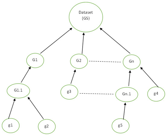 Figure 5 depicts network techniques for granular computing. The training granular computing network algorithm is suggested by the following steps for training set: The atomic granule is first formed using the training set. Second, the stated union operator introduces the threshold of granularity to conditionally combine the atomic granules, and the granule set is made up of all the union granules. Thirdly, the union process ends if all atomic granules are included in the GS granules; otherwise, the second phase is continued.