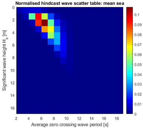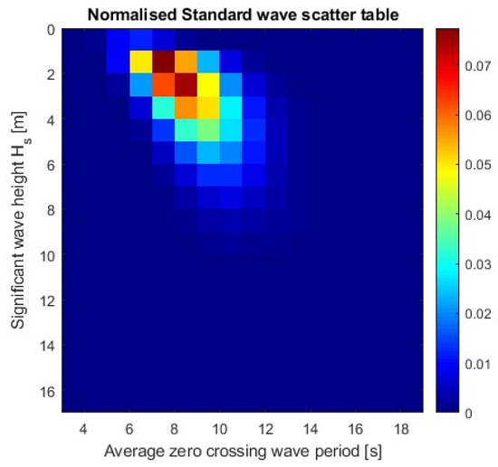All design assessment pathways in the SGISC require three input factors: the environmental factor, the ship’s internal loading conditions and the ship’s design parameters. The environmental condition is the most challenging among the considered input factors, especially when developing operational measures (OMs). Accurate environmental data are required to identify operational limitations and operational guidance parameters. Meanwhile, a simplified OM uses a wave scatter table (WST), which is a collection of historical wave data statistics. The SGISC provides no specific directions to incorporate real-time weather data while using the WST for effective OMs [4]. The WST provides the probability of wave occurrence as a function of significant wave height and zero-crossing period. The SGISC recommends using the standard WST (Figure 1) to assess the dynamic behaviour of a ship [1].
