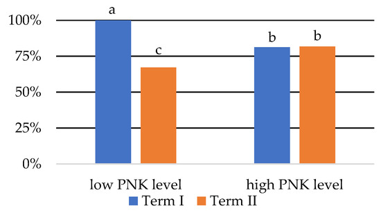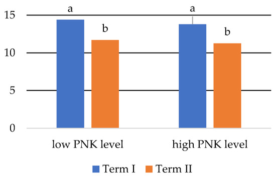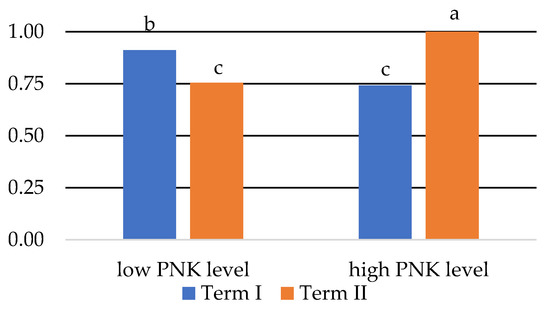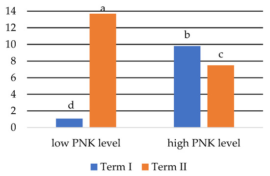 At the lower plant nutrient level (PNK), the level of cadmium contamination was almost 13-fold higher after six weeks compared to three weeks; however, this value decreased by 24% at the higher nutrient level (Figure 2).