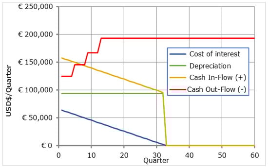 The use of NPV as a part of the decision support methods is a widespread practice in engineering design which may be confirmed by the review of the state of the arts in [] and in a specific study in [,,,,], among many others.