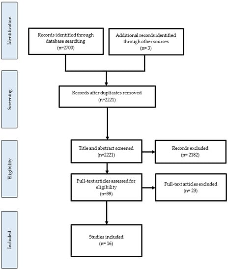 - Tricco, A.C.; Lillie, E.; Zarin, W.; O’Brien, K.K.; Colquhoun, H.; Levac, D.; Moher, D.; Peters, M.D.J.; Horsley, T.; Weeks, L.; et al. PRISMA Extension for Scoping Reviews (PRISMA-ScR): Checklist and Explanation. Ann. Intern. Med. 2018, 169, 467–473. [Google Scholar] [CrossRef] [PubMed]
