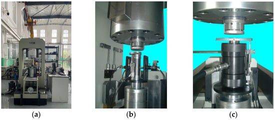 Mechanical experimental equipment. (a) Experimental equipment; (b) Triaxial compression tester; (c) Uniaxial compression tester.