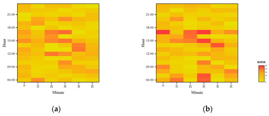 Figure 6. The RMSE errors distribution of inflow at 10-min granularity. (a) AMGC-AT; (b) STGCN.