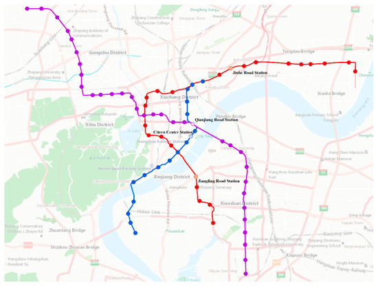 During the raw data processing process, completely duplicated records were first removed, and the data from station entry and exit times outside the subway operating time were also removed. We then deleted the same input and output records and removed records for travel times of more than three hours as Hangzhou Metro requires a fee of $2 to stay in a station for more than 3 h, and very few riders will travel more than 3 h.