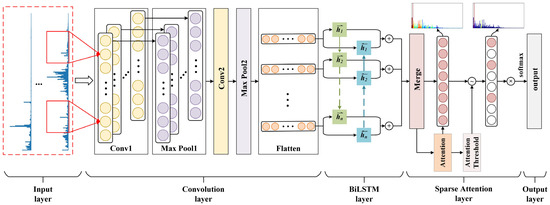 After the signal is enhanced by sparse attention, all the sequence features are integrated into a bidirectional LSTM layer. The bidirectional LSTM can connect forward and backward hidden states to capture sequential information in the input data.
