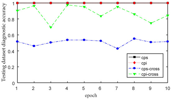 As can be seen from Figure 6 and Table 6, the bearing data features are relatively clear, and the model classification performance can reach 100%, but the cross-working condition diagnosis performance of the CPI method is significantly better than that of the CPS method. Hence, the diagnostic generalization of the independent method of each sequence convolution parameter is better.