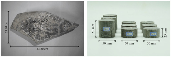 Rock core-cutting technology was adopted to process the samples, and dry-wind cooling was used to avoid pre-swelling of the sample during processing. The gypsum samples to be tested were drilled from an original rock in parallel directions to avoid the influence of rock structures of different layers.