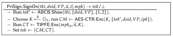 In the PriSign.SignOn algorithm, we use the AES-CTR algorithm to hide the presentation of tickets and the TIPFE scheme to hide the AES encryption key. According to the definitions of attribute-hiding and CPA-secure, it can be directly concluded that our scheme is token-hiding. □