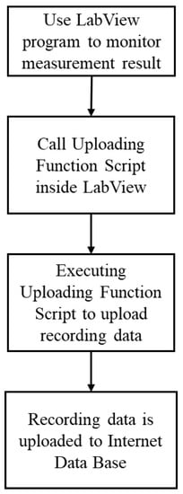 When the recording stops, the uploading button is used to run the script to upload the measurement data. There is a mechanism to ensure that the recording ends successfully before uploading. The message can be viewed to ensure that the data are uploaded correctly to the Internet database.