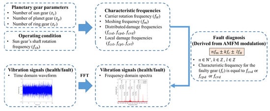 In terms of the harmonics of mesh frequency , the modulation effects and harmonics of , the sideband locations are 𝑛 (n ∈ , 𝑙 ∈ 𝑍), where is the characteristic frequency of one corresponding gear damage. For planetary gear sets, the configuration of the gearbox is the defining factor.