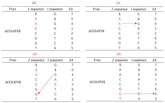 For the original pattern sequence , the query sequence pattern = GA. The matching process is shown in Figure 4.