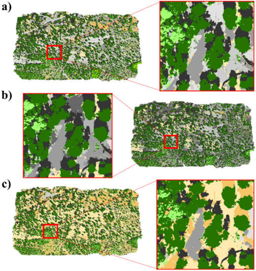 Figure 11. Classified models: (a) SVM; (b) MLC; (c) RTC.