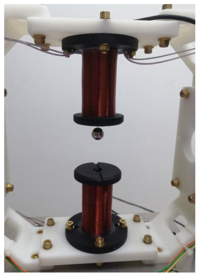 The parameters of electromagnetic actuators 1 and 2 are the same, which are given in Table 1. The permanent magnet ball is made of NdFeB, and Bs = 677.3 mT. In addition, the ball’s radius r = 6.35 mm and mass m = 8.15 g.