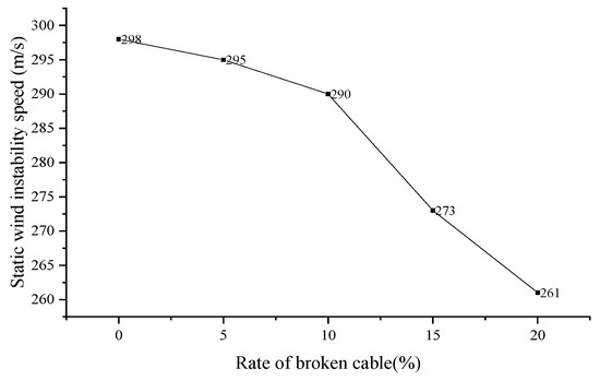 Critical aerostatic instability wind speed with the steel wire breakage rate.