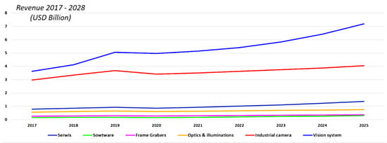 Revenue forecast by product connected with the building and application of vision systems in the manufacturing industry [55].