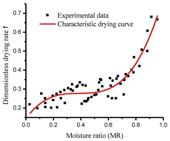 The relation between the normalized drying rate and the experimental MR is shown in Figure 6. The data obtained at all air-drying temperatures (60 °C, 70 °C, and 80 °C) were plotted. The equation to fit the data well was in the modality of a third-order polynomial. The polynomial equation of the characteristic drying equations (CDE) for Arbutus unedo L. is given in Table 3.