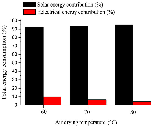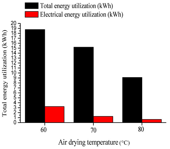 The total consumption of energy (kWh) by the drying system was calculated using Equation (9) [45]:
